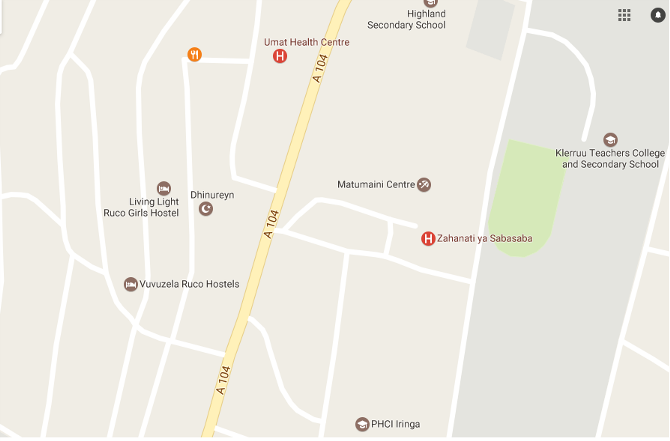 We are 0.4km away from Iringa regional clock tower along dodoma road on your way to Dodoma.